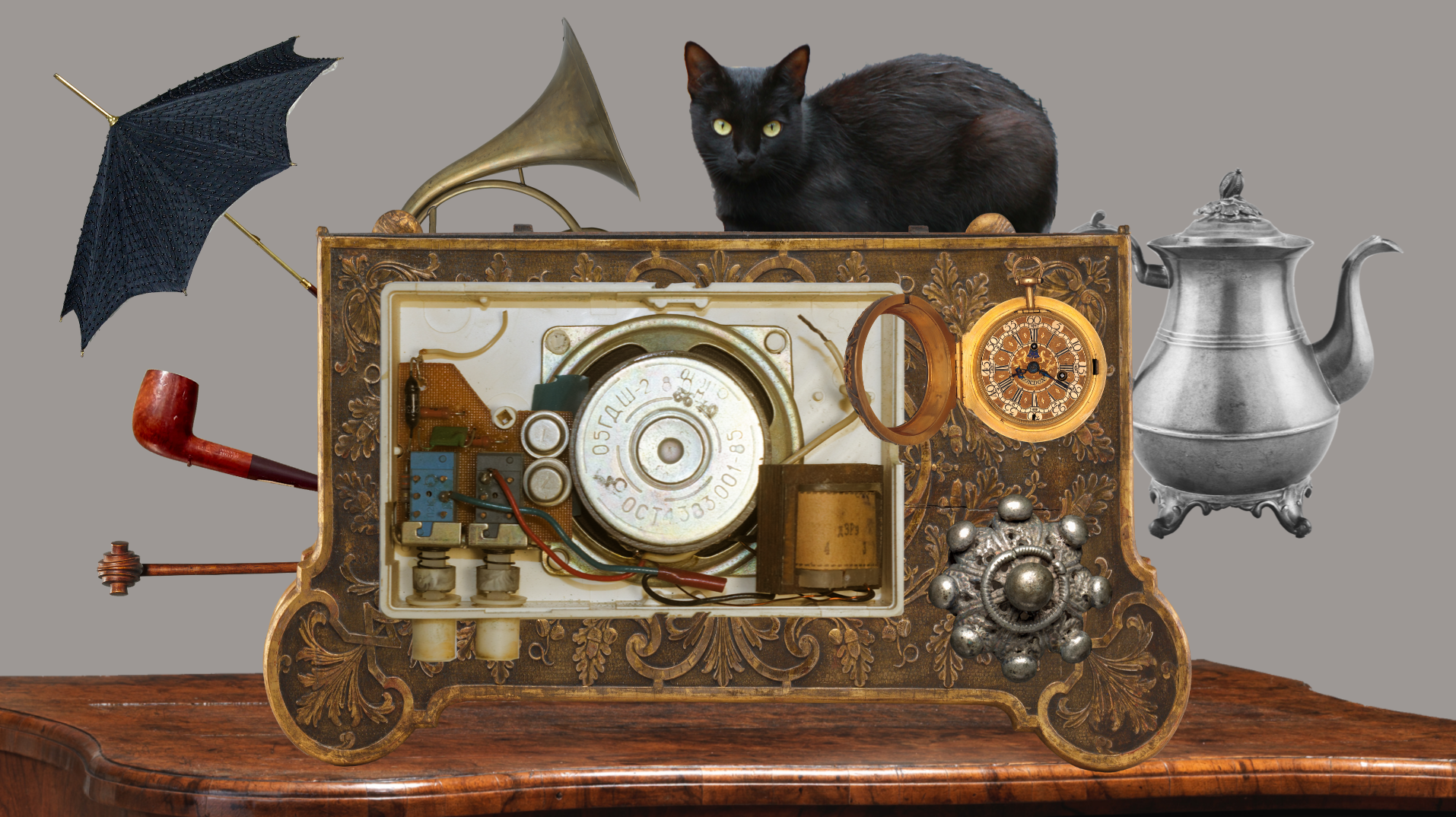 In the center is a nonsensical machine-like object, and clicking on the various elements produce sounds (be careful about your audio volume!).
